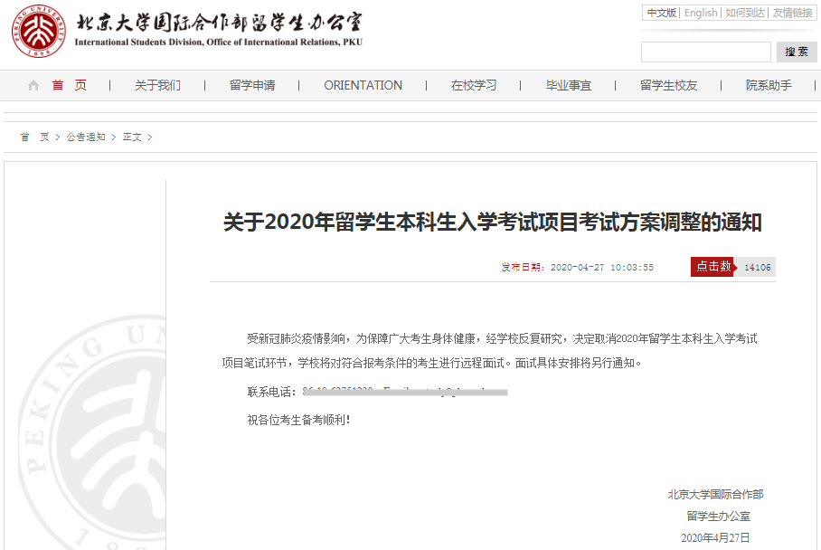 更让人意外的是,2020年清华、北大更是出台了取消留学生本科生入学考试项目笔试环节,对符合报考条件的考生进行远程面试。