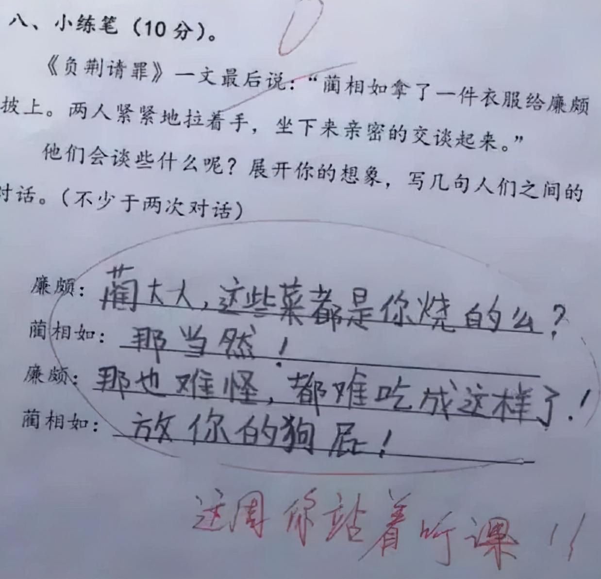 其实这些零分试卷让老师又爱又恨,爱的是学生们那些有趣的想法,脑洞之大是成人所难以企及的,“恨”的是学生答出这样的试卷也未免太不拿老师和考试当回事了。