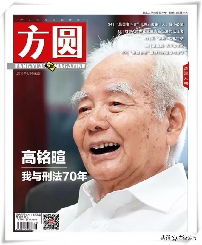 法律读库按语:在庆祝中华人民共和国成立70周年之际,根据全国人大常委会的决定,授予42人国家勋章、国家荣誉称号。在这次表彰中,中国人民大学法学院教授、中国刑法学研究会名誉会长高铭暄是法学教育领域唯一的获奖者,被授予“人民教育家”国家荣誉称号。9月29日上午10时,中华人民共和国国家勋章和国家荣誉称号颁授仪式在人民大会堂隆重举行。中共中央总书记、国家主席、中央军委主席习近平为高铭暄教授授予“人民教育家”勋章。今天我们特转载《方圆》杂志专访文章予以祝贺!