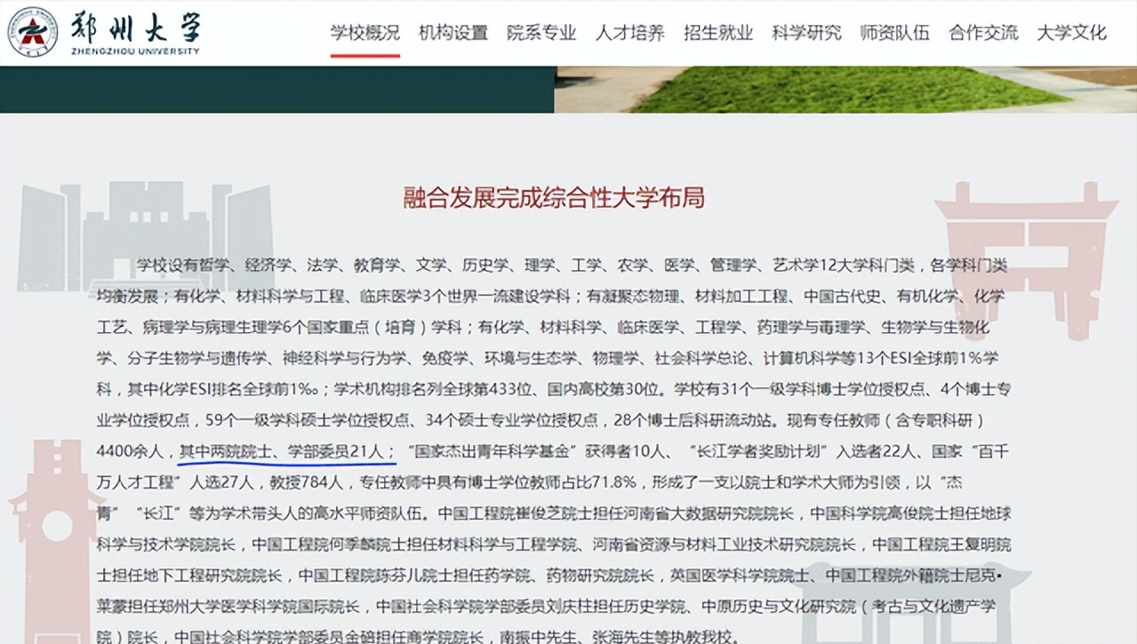 郑州大学的快速发展,得益于重量级教授和青年博士的引进。这一点,从学校的师资力量结构变化中就可以看出来。这不,郑大更新了学校简介,学校目前已经拥有了21位院士和学部委员。