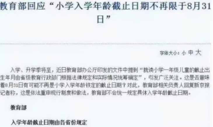 有关部门对于家长们的呼吁,也十分重视,因此也回应了关于家长的呼吁,明确表示了小学生入学年龄截止日期将不再限于8月31日,但值得家长注意的是,有关部门目前只是出台了大方向,并没有对各城市进行明确规定。