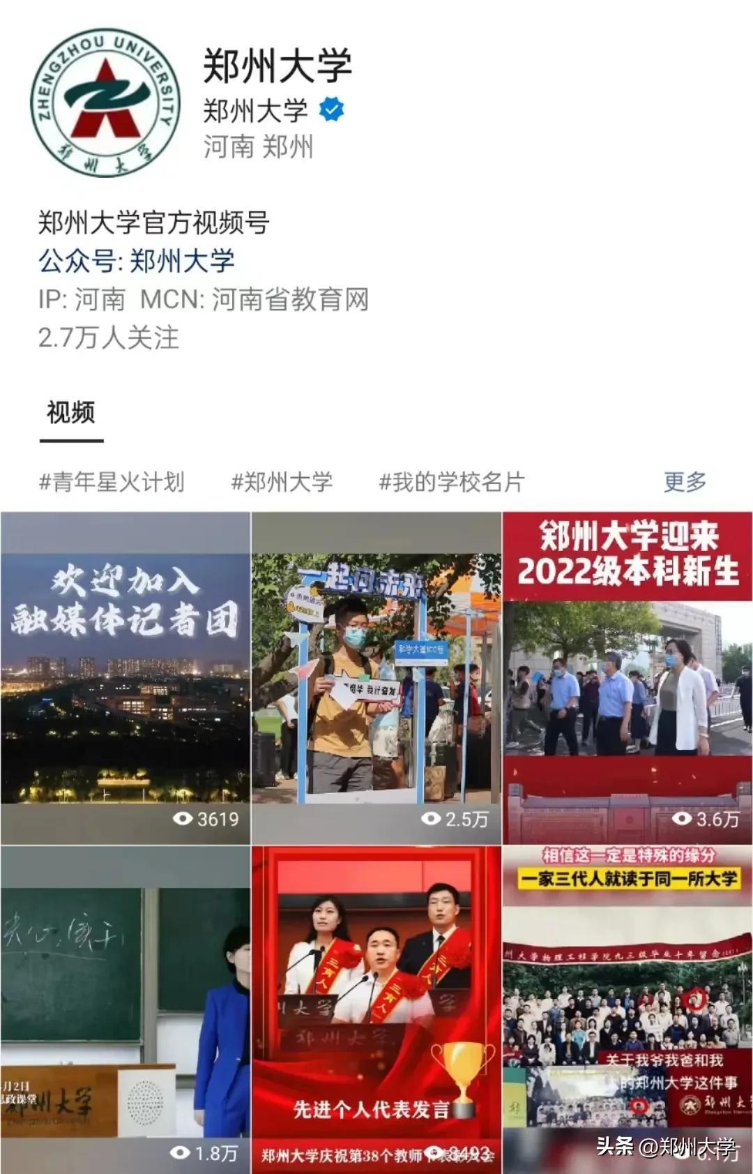 我们是郑州大学融媒体记者团视频组,负责运营郑州大学官方抖音、快手、B站。为郑州大学官方微信、视频号官方微博、头条等平台提供视频。参与学校的各种活动以及纪录片拍摄,是郑州大学最为重要的视频产出基地。我们三大平台坐拥粉丝75w,受众广泛,努力做大众喜闻乐见的校园视频,视频点赞总量2300w+,是具有影响力的高校视频平台。