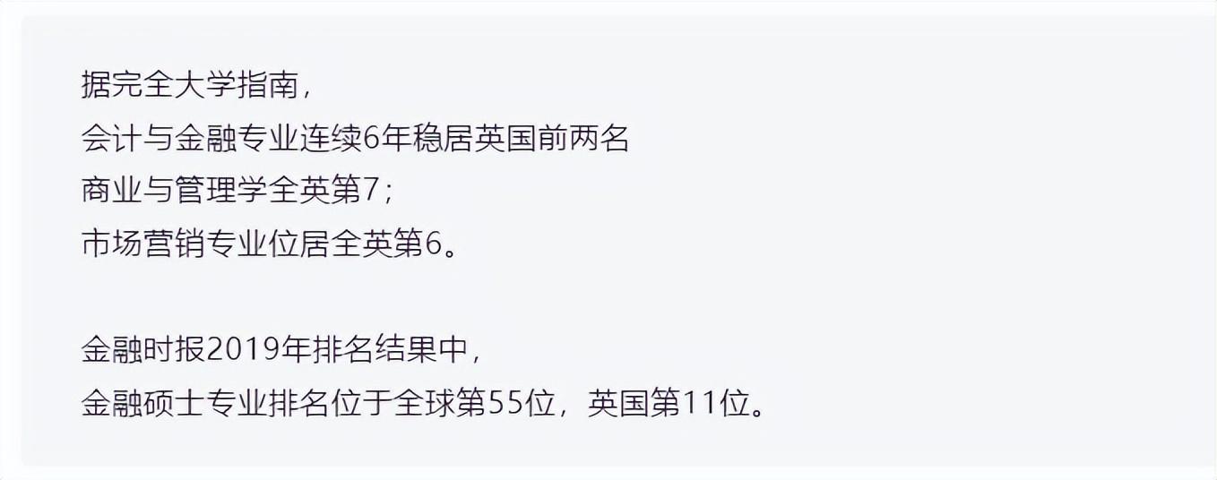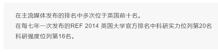 其数理统计学极为优秀,是英国少数几个具有精算师豁免资格的大学。精算科学硕士研究生项目更是该校最具特色,最有吸引力的王牌学位课程。授课的老师全部都是精算师,非常权威。