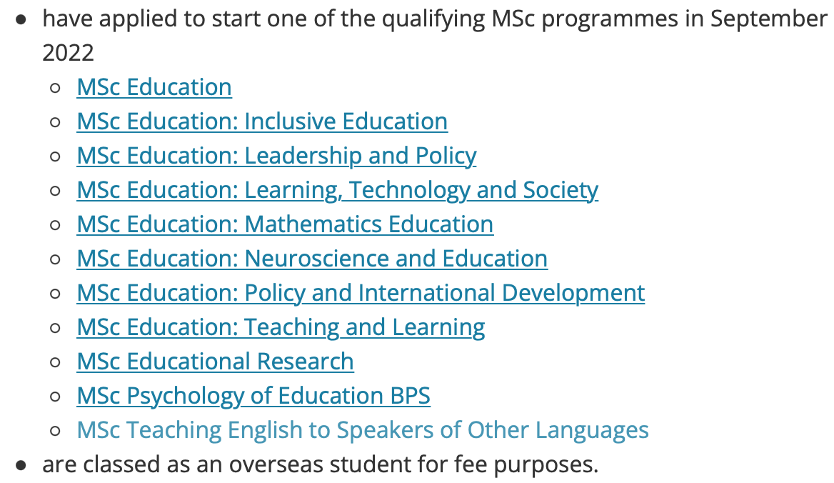 School of Education一年全日制研究生(包含以下项目)