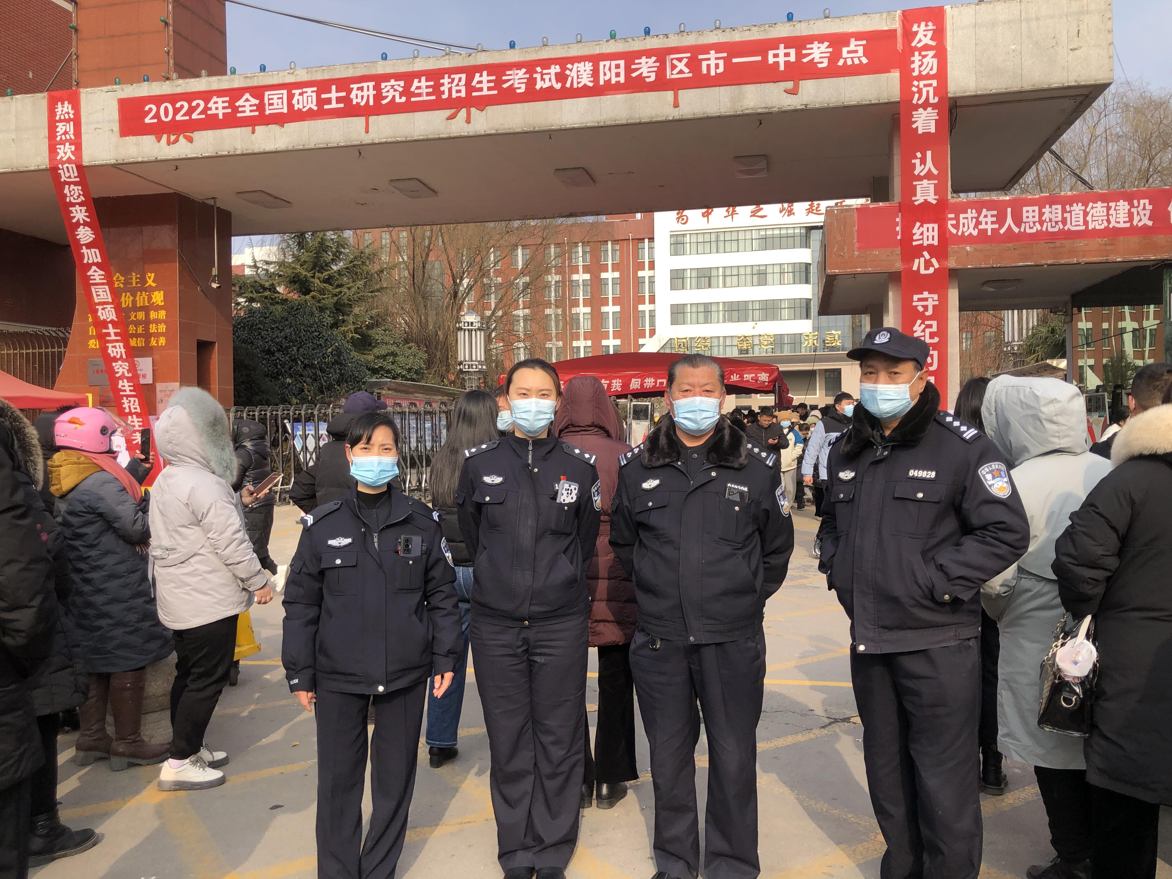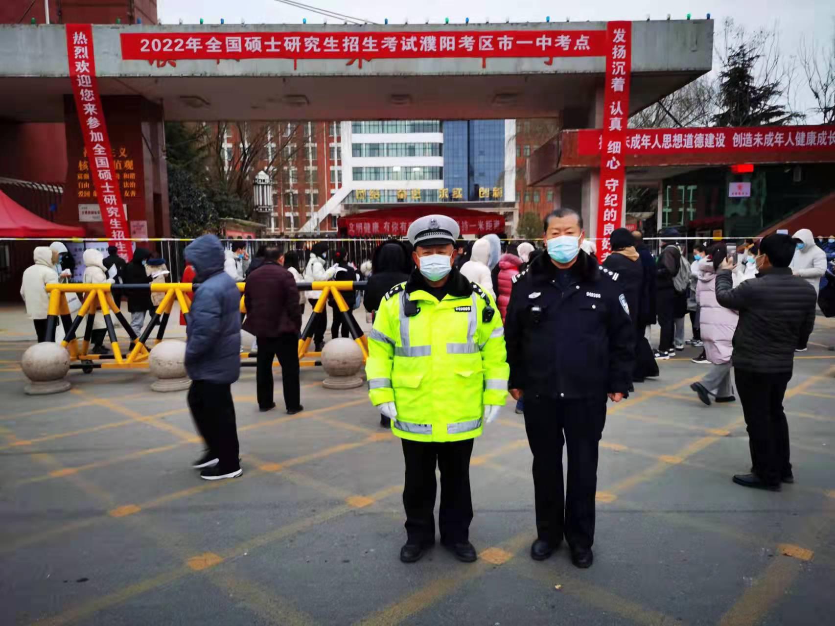 为确保研究生考试安全顺利进行,濮阳市公安局华龙区分局、交警支队结合实际,精心组织,优化警力部署,严格落实校园安保措施,加强考点周边治安检查和隐患整治,随时接受各类求助、报警,为考试工作提供便捷、高效服务。为期两天的考试期间,每天早上7点准时到岗,全体执勤民警值守在考试现场,不畏严寒,纪律严明,警容严整,确保考点的秩序良好,着力提供最暖心、快捷的绿色服务。