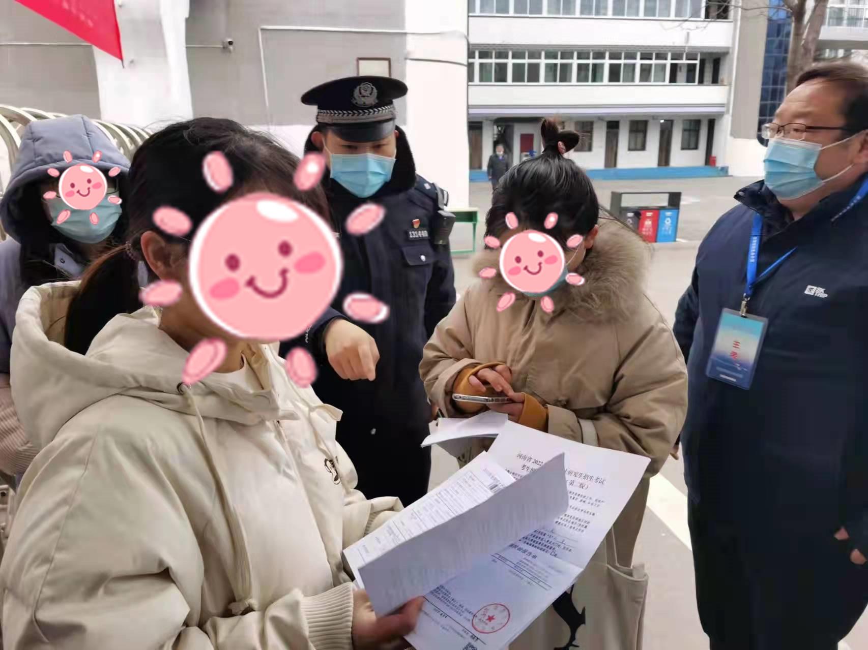 12月25日,示范区公安分局水稻派出所民辅警正在河南大学考点执勤,8点22分,一名考生急匆匆地跑到民警身边求助,说身份证丢了。此时距离开考只剩8分钟了,民警一边安抚考生情绪,一边立即通过警务通查询考生的个人信息,待确认身份后迅速为考生开具了身份证明,前后用时不到2分钟,拿到证明后考生激动地连连称谢。