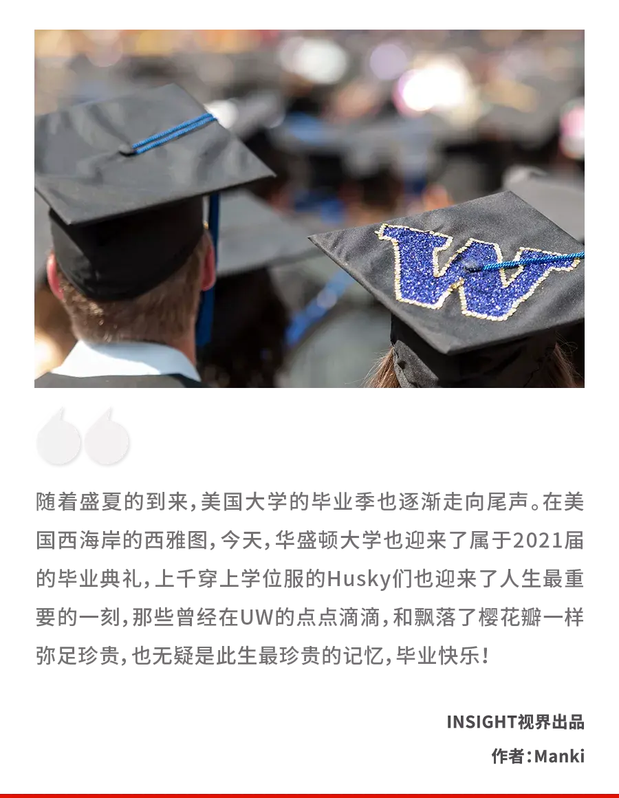 2021年6月12日,华盛顿大学的第146个毕业典礼正式拉开序幕,上千名2021届毕业生将穿上学位服,共同庆祝这值得纪念的时刻。