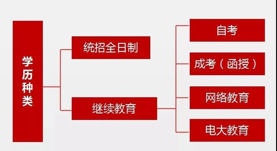 学历分为统招全日制学历和成人教育学历,如下图: