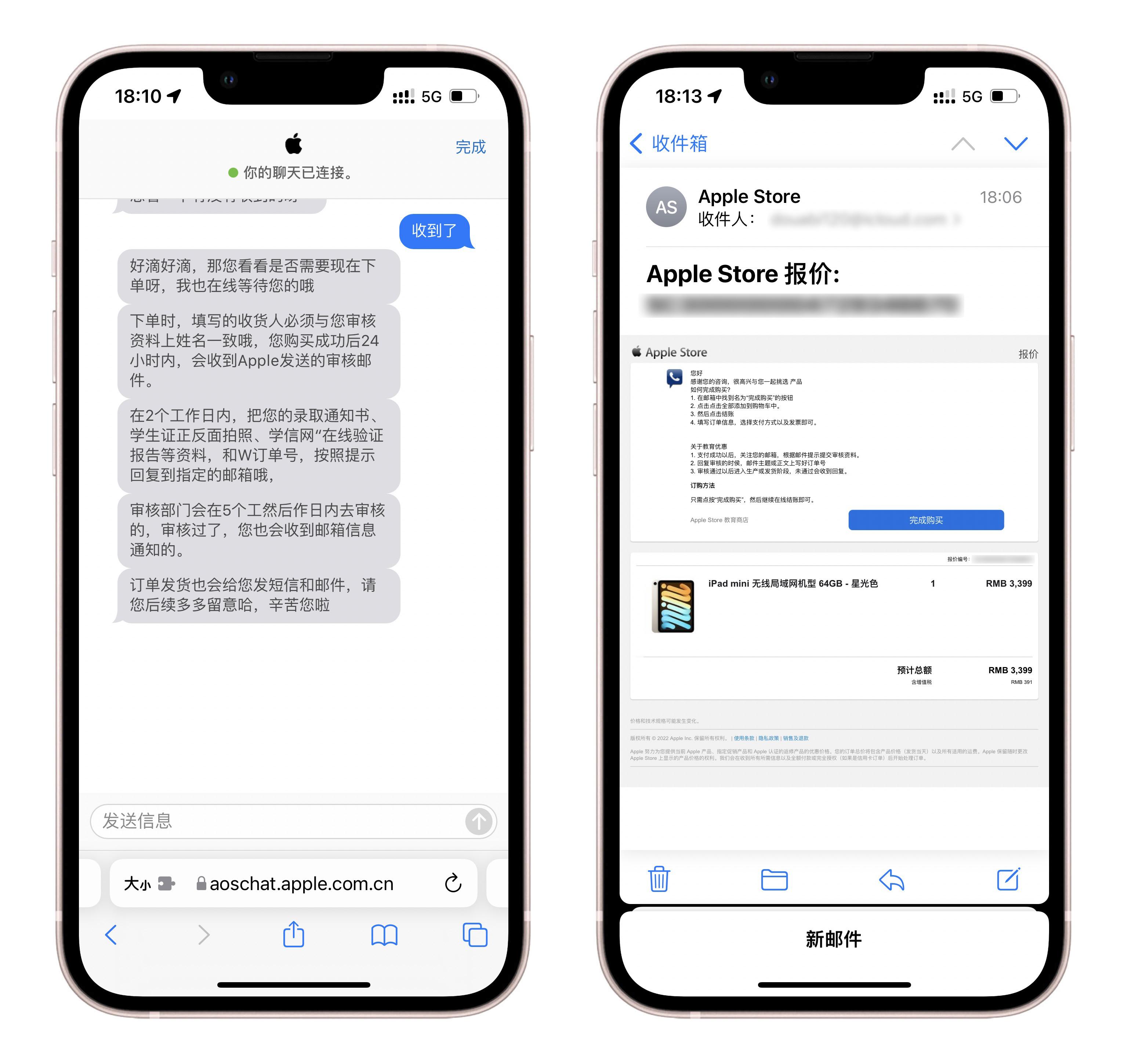 完成下单后,苹果会通过邮件的形式(不能直接回复,因为收件人不同)要求用户提交相应的证明,没有在指定时间内回复会自动取消订单。