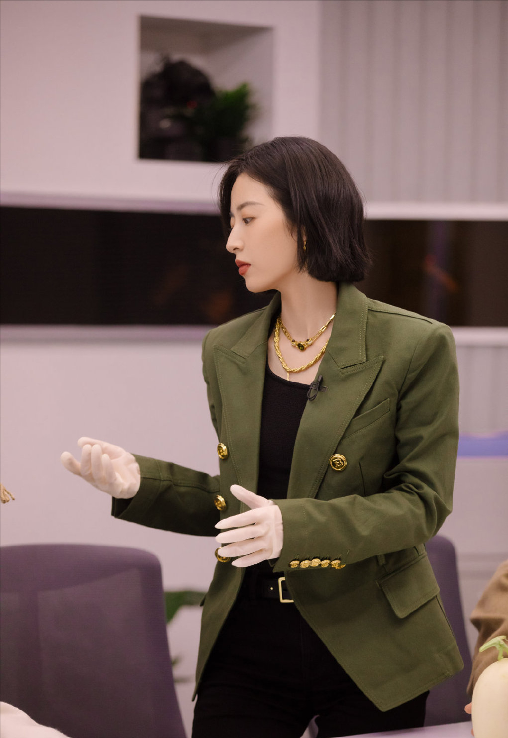 网上曝光一组周雨彤在节目《初入职场的我们法医季》中的造型,周MM身穿帅气的军绿色西装外套,时尚精致又有个性,穿出女孩子骨子里英气的一面,飒爽英姿,比男孩子还要炫酷迷人。