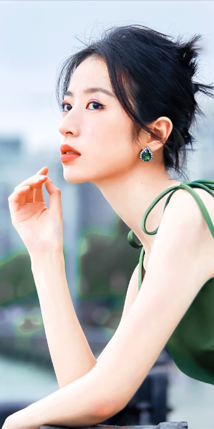 周雨彤内搭了黑色的圆领打底衫,军绿色和黑色的组合经典耐看,简约又高级,显得人更有精神气,镜头感满分。