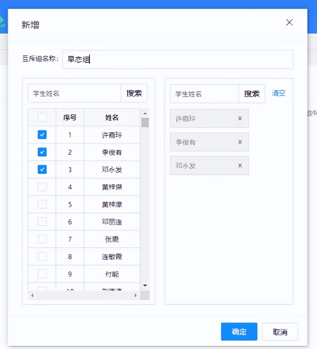 互斥规则:属于学生特殊分班要求,可设置多个学生不在同一个班级。