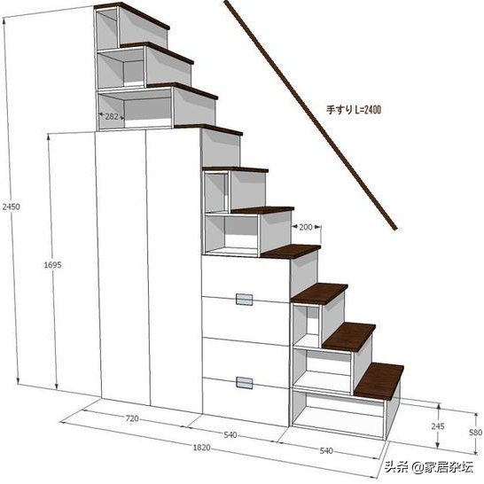 通过以上四个步骤,就给大家简单的计算出了楼梯踏步的尺寸以及楼梯段水平投影长度,还有就是楼梯井的宽度,以及楼梯休息平台的宽度。我们把这几个尺寸合起来就可以得到我们家完整的楼梯的尺寸了。所以说,如果我们想计算楼梯的尺寸,首先应该选择一个大致的踏步尺寸,然后以踏步尺寸为基础,来分别进行计算整挂楼梯的尺寸就可以了。