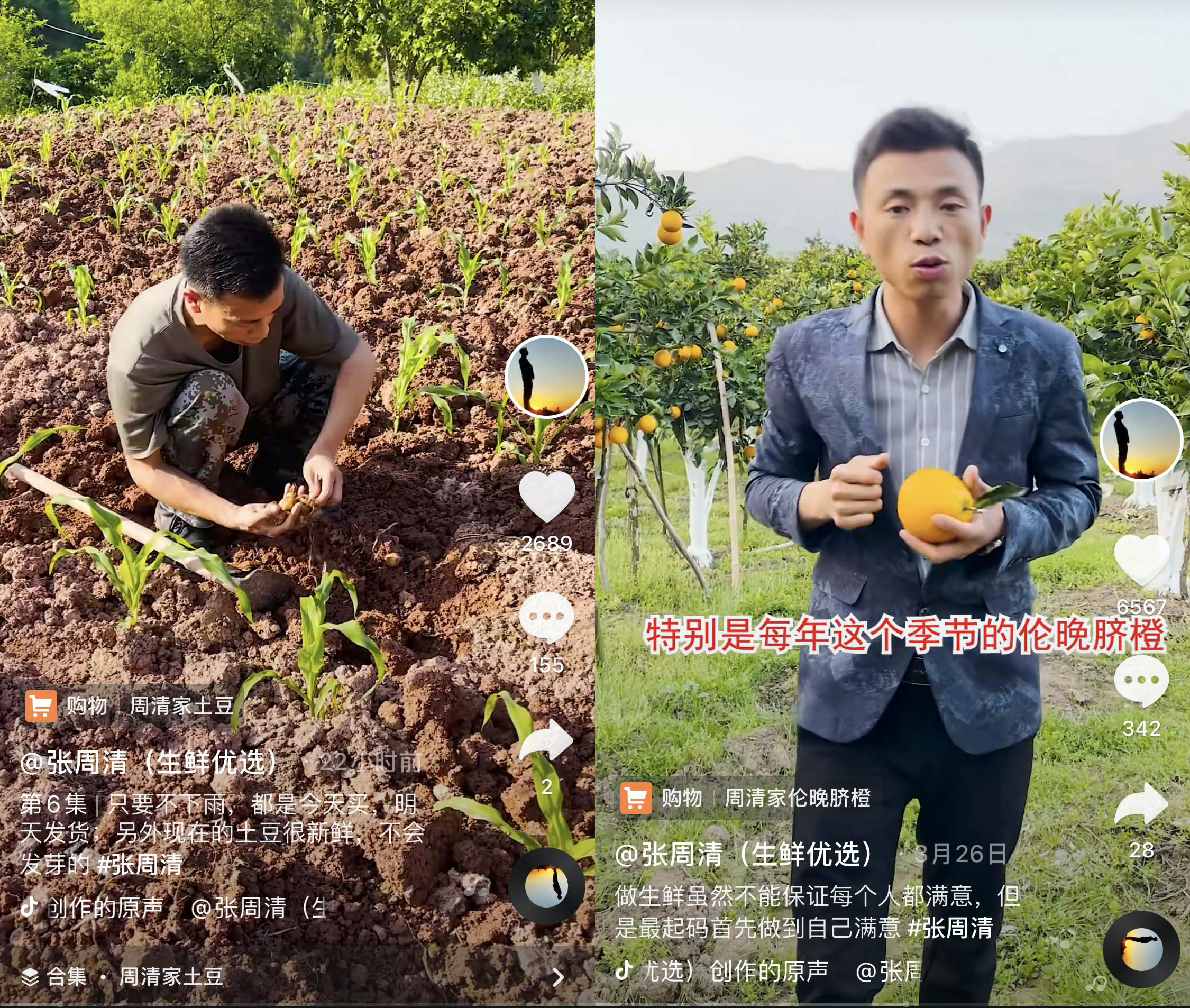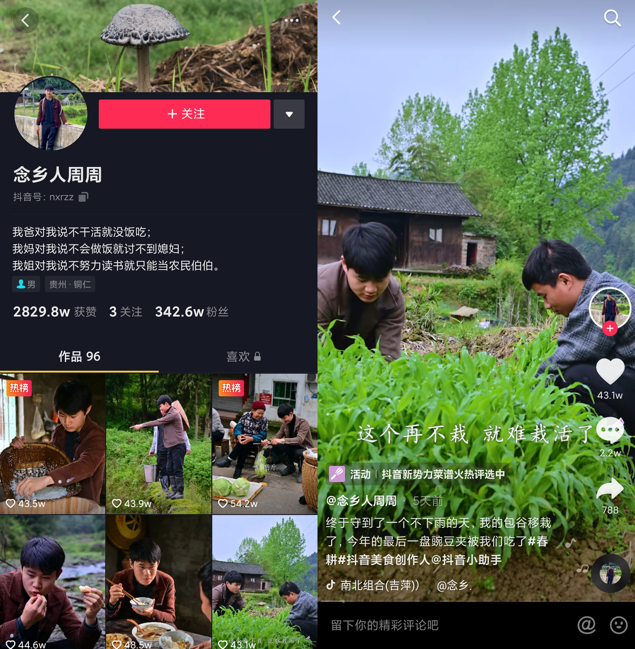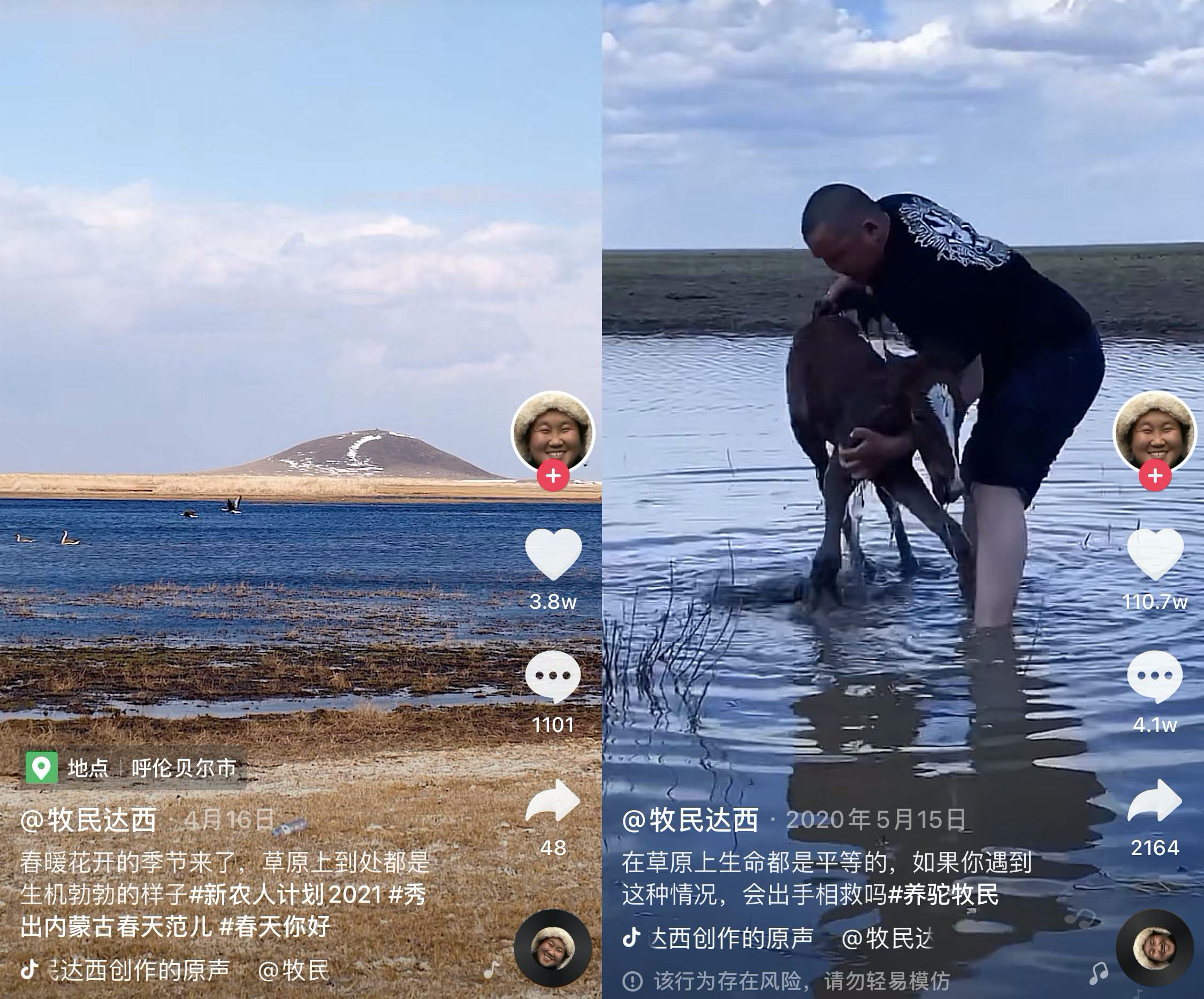 在抖音上,还有很多如大新、璐英流、周周、张周清、无穷小亮和牧民达西一样的青年创作者: