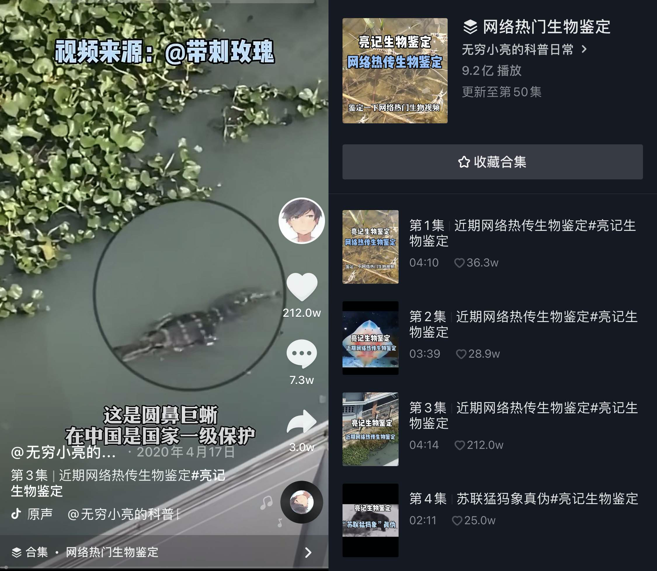 “无穷小亮的科普日常”(抖音ID:wuqiongxiaoliang)是张辰亮2019年11月开始运营的抖音号。作为中国国家地理《博物》杂志的副主编,张辰亮一直孜孜不倦地做着科普工作:运营官微、出版科普书。