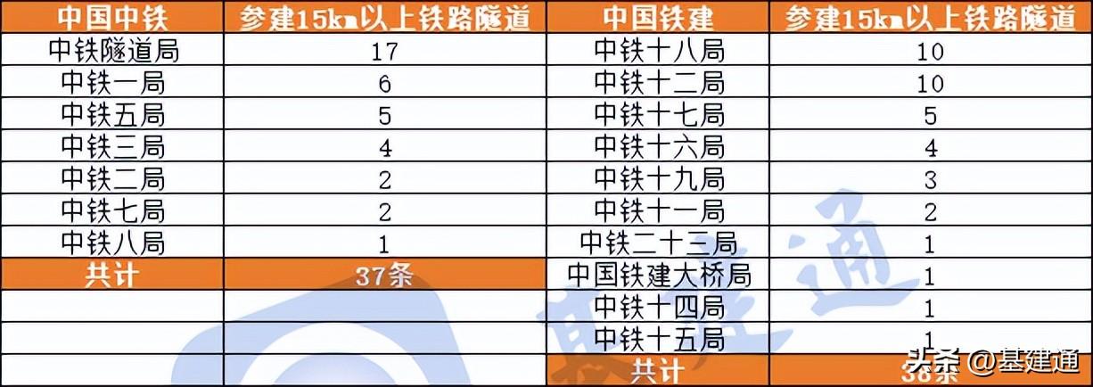 除了以上三家企业,中铁一局、中铁五局、中铁十七局、中铁三局、中铁十六局在铁路特长隧道施工方面均实力不俗!