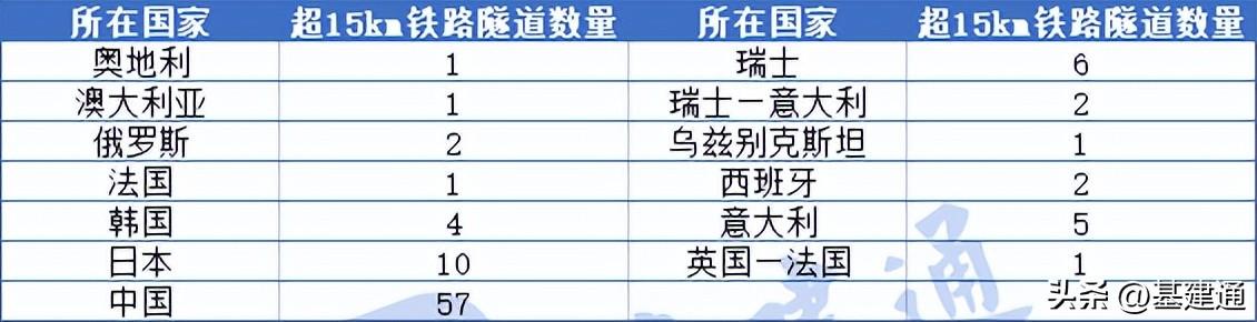 (世界已建成超过15km的铁路隧道清单可在基建通查看~)