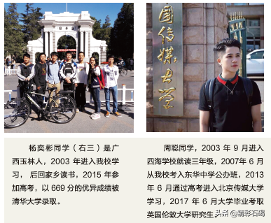 谢沛全(左二),广西南宁市横县人, 2013年在我校初中毕业,参加中考,被公办高中录取,2016年参加高考, 被中国美术学院录取。