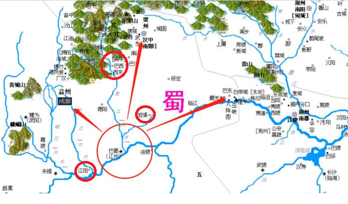 江阳在哪儿呢,不如来看看地图,但看完后是不是觉得更懵了——曹操大军压境,诸葛亮不在成都,为何反而往南边跑了。其实答案很简单,要从汉中攻向成都必须通过一夫当关的剑阁,这对强弩之末的曹操来说太难了。所以曹操的计划是,先让张郃率军透入巴中,抢夺人口,伺机夺取阆中、宕渠与江州,这样就可以控制住包括嘉陵江与长江的东川水道,切断刘备从荆州回援益州之路,然后各个击破,方为上策。