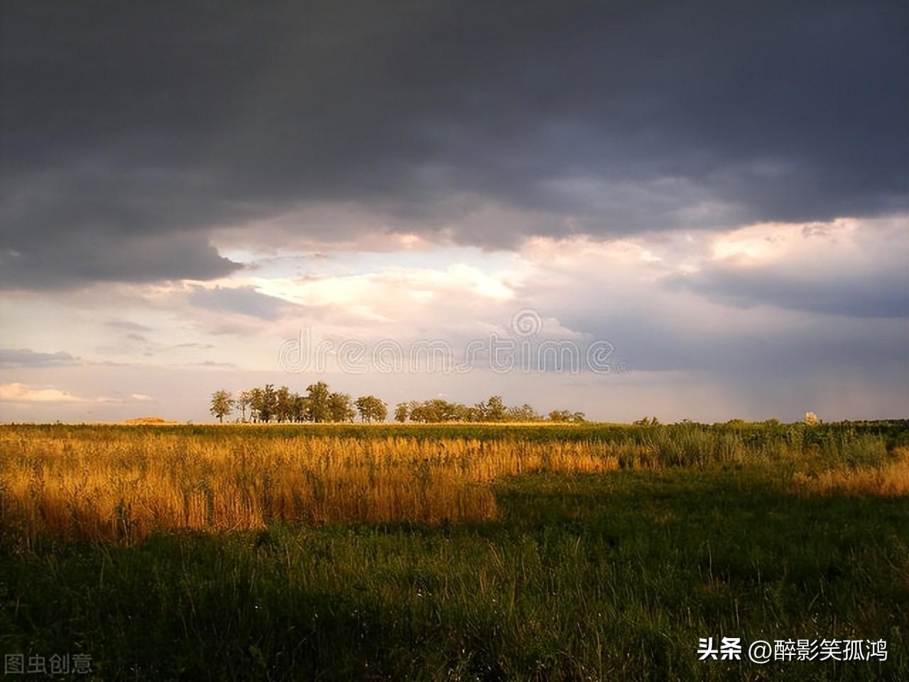 雷云(轰响)、(走过)荒野、(吹着)口笛、(拍着)大手、(扬起)双臂、(湿润)的东风、(簌簌)地响。
