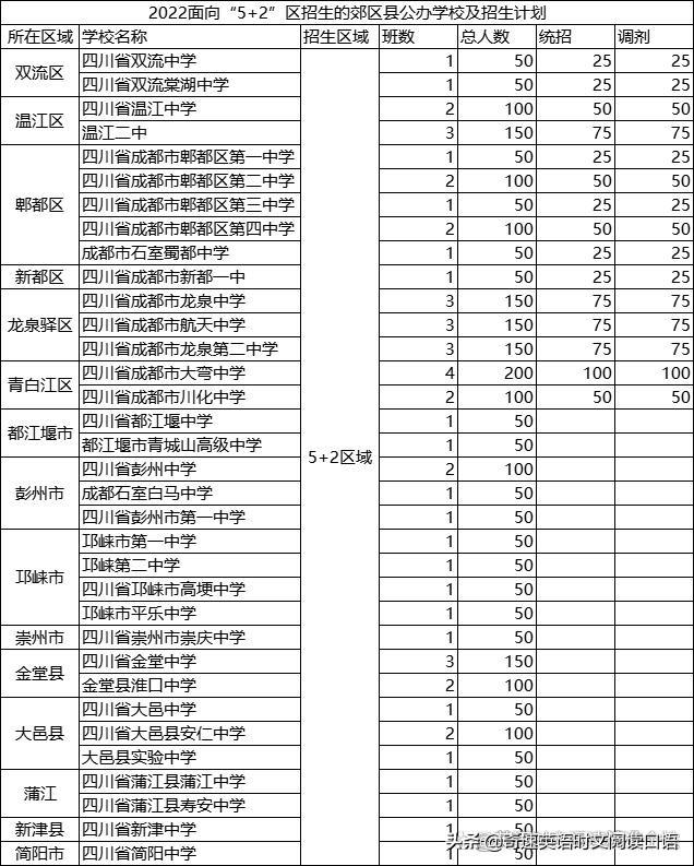 下一篇会统计成都5+2各区优质高中的初升高录取计划,指标计划等(比如川师附中,教科院附中,石室天府,川大附中,列五中学,七中万达,成都铁中,成都49中等优质学校的招生计划和指标计划),以及初升高衔接教育问题。如果孩子在升学或英语学习上有任何问题,可以关注私信我。本文数据来源于网络,如有数据差错,请及时指出,非常感谢。