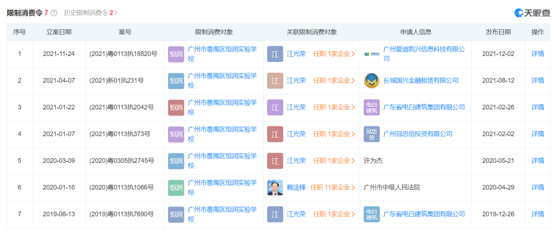 据了解,恒润实验学校是番禺区知名私立中学,中考成绩在番禺区名列前茅,与此同时,该校的学费也不菲。另据“天眼查”网站信息,该校近几年官司缠身:2019年至今,至少7次被列为“限制消费对象”。