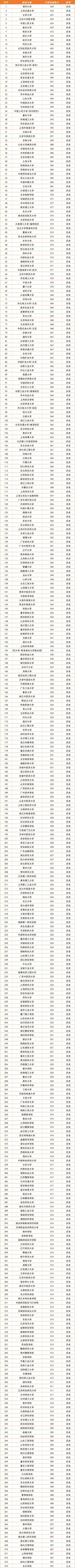 我们先看一下首先历史,全国985高校录取分数排名情况。