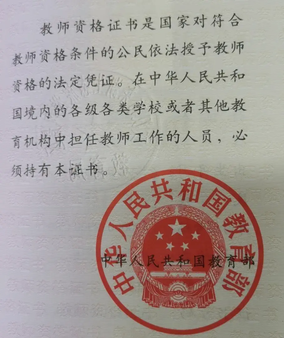 现在的教师资格证,由国务院教育行政部门统一印制,证书规格25开,共8页。上面有这些信息: