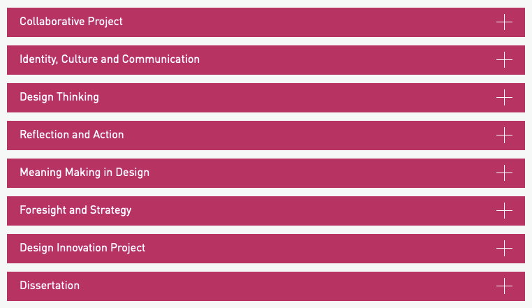 Design Innovation, 即 #设计创新# 专业,类似于SVA的DSI, 不着重强调设计的实践,而是将设计与管理的内容结合在一起,培养学生的设计思维、创造力和使用工具的能力。