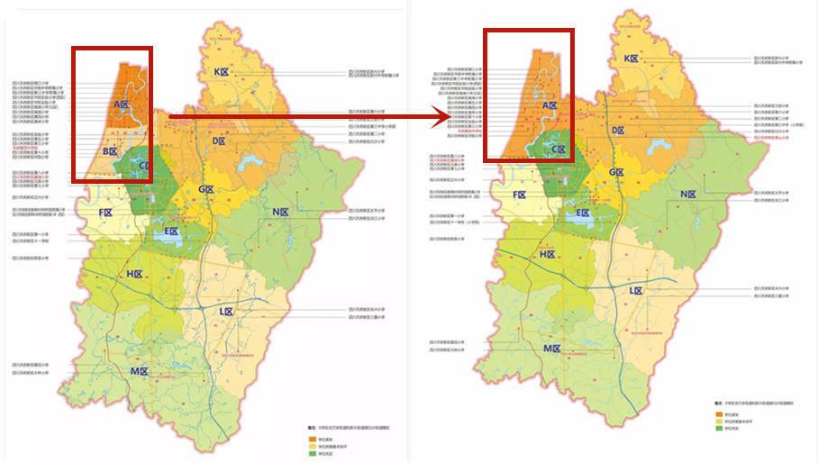 B区这次被调整的很大一原因应该是B区整体入住率不高,除了早期交盘的中海锦江城、万锦熙岸、万科、德商等楼盘外,其余19年开盘的楼盘(万科、中海、首创)仅仅处于交房初期阶段,再加上整个区域入住率不高,平衡教育资源是短期的抉择。
