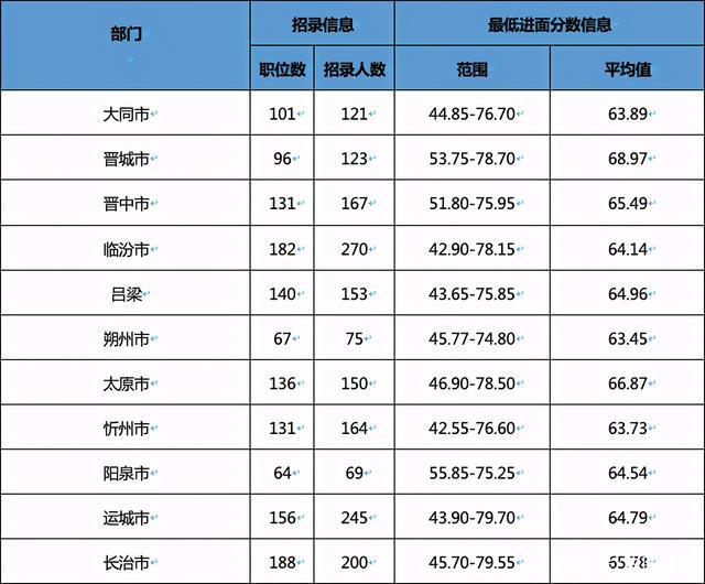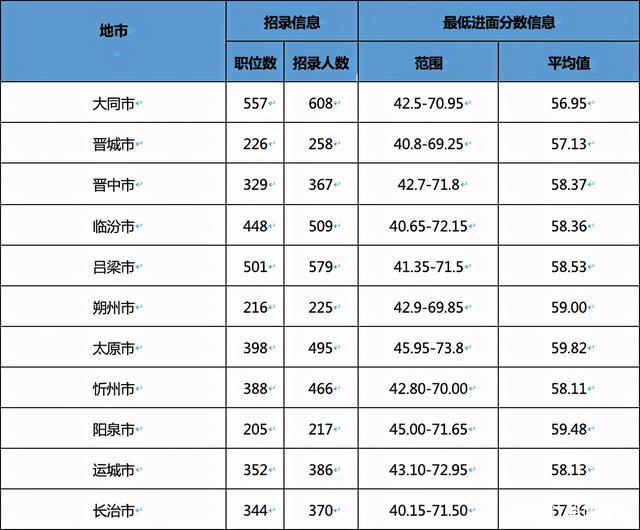 通过2018-2020年山西各地市的最低进面分数来看,平均进面分数在56分以上,其中进面分数最低是40.15分。因此大家不必太受招录人数影响,抓紧时间积极备考才是王道。