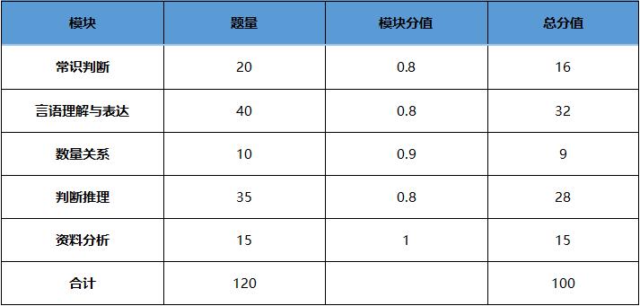 历年山西省考行测试卷主要考察言语理解与表达、数量关系、判断推理、资料分析(资料)和常识判断五大部分,共计120道题,2021年山西省考行测科目考试也不例外。