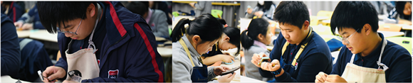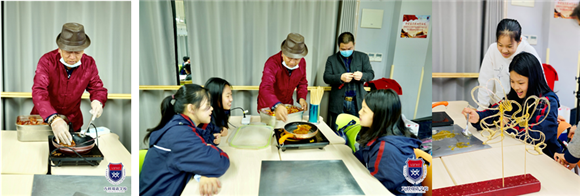 吴自牧在《梦粱录》中有记载:“小儿戏耍家事儿,如戏剧糖果之类:行娇惜、宜娘子、秋千稠糖、葫芦、火斋郎果子、吹糖麻婆子孩儿等。”中学部中文周学生们也亲身体验了一番古时的民间手艺,为中文周的活动增添了不少童趣。