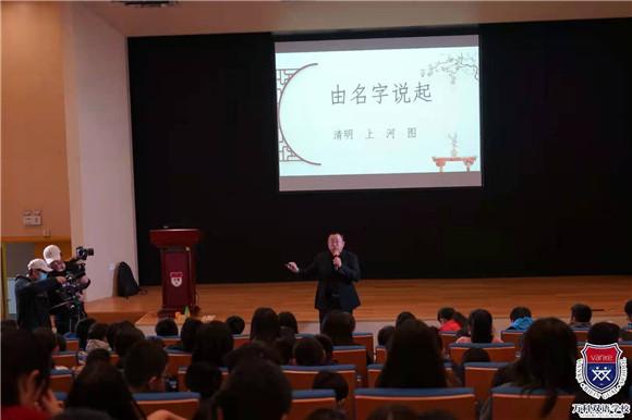 本次万科双语学校中文周的活动在专家张源教授的讲座“梦回繁华—《清明上河图》解析”中拉开序幕。张教授对这幅图的钻研和热爱超乎常人,他凭借其历经数年整理史册的阅历,用清明上河图中感人的故事向学生诠释古画的寓意。同时,他也通过对《清明上河图》的详尽解析,让学生在了解画卷之余,更悟祖国过往的繁华,提升了学生的民族文化自豪感!