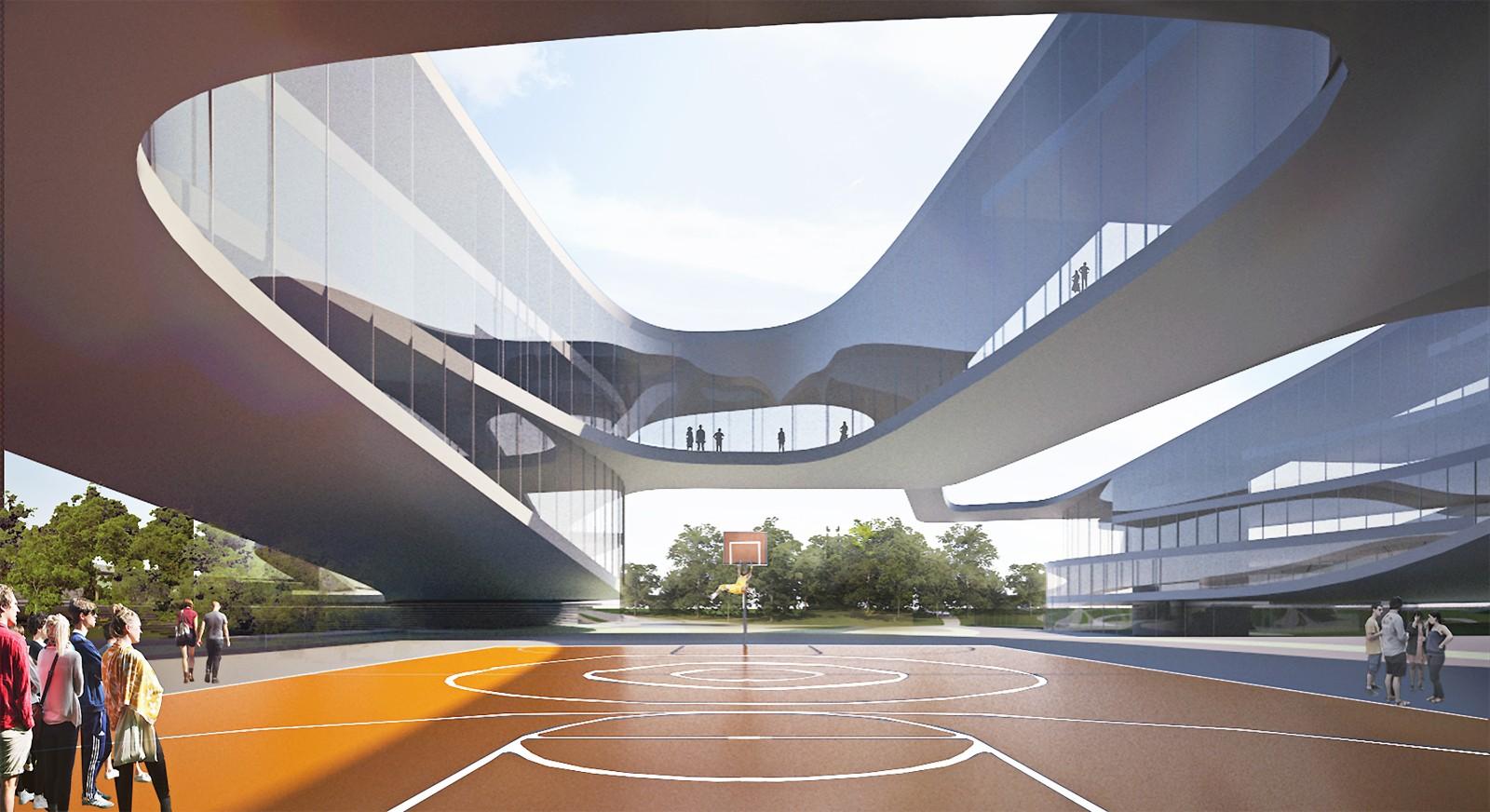 这座生命体特征的建筑群从陆地丘陵中生长,如同追求更为广阔世界的一片自由的海浪。在自然、场地、海洋、建筑、教育与人的关系平衡之间,将艺术的自由生长与人文的理性光辉共施于建筑规划之上,并将开启中央美术学院去探索创新教育、自主科研、社会服务与文化传承的全新模式。