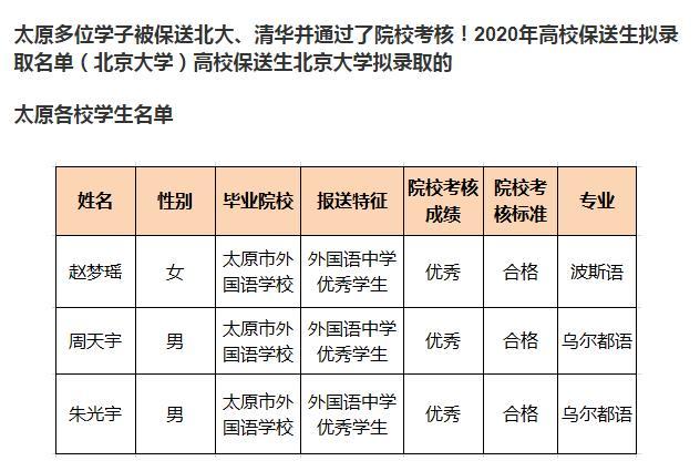 入学看成绩太原市外国语学校、太原市第二外国语学校和太原市进山中学校继续面向城六区小学毕业生招收小语种、航天实验班学生,只能进行外语能力评估、航天科技素养及创新思维能力评估,不得进行其他学科测试。