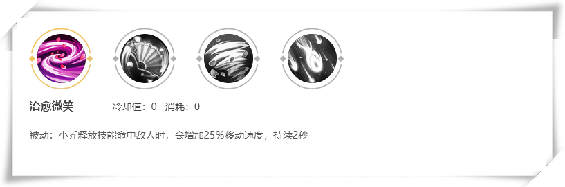 小乔释放技能命中敌人时,会增加25%移动速度,持续2秒。
