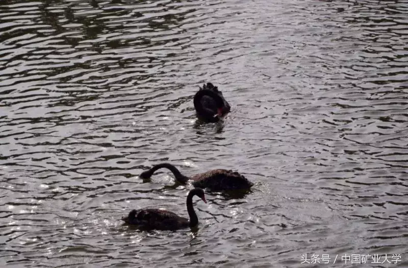 矿大的镜湖,常年出没一群美丽的鹅,好像它们才是镜湖真正的主人。矿大校园中的黑天鹅「产自澳洲」还会给湖中的金鱼喂食。