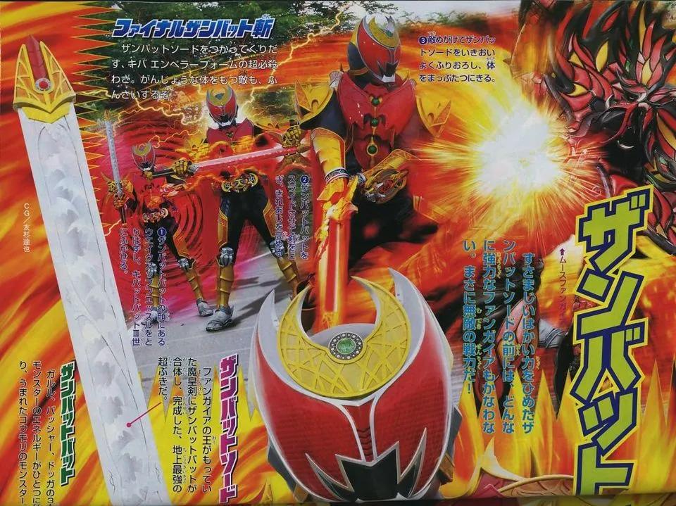 然后有限制器的Zanvat剑能一击重创与魔皇铠甲同性能的saga,所以有限制器的Zanvat剑>核爆无伤无误,更不用说无限制器的zanvat剑了,而且下面这张设定图也提到有限制器的Zanvat剑已经是地上最强武器,还提到在这把剑面前任何Fangire都敌不过的无敌战力,说明有限制器Zanvat剑>核爆无伤和Arc的三叉戟(一击爆山+一击粉碎地球上的任何物质)结合这几点来看,称无限制器Zanvat剑为“完全的灭世兵器”也不为过