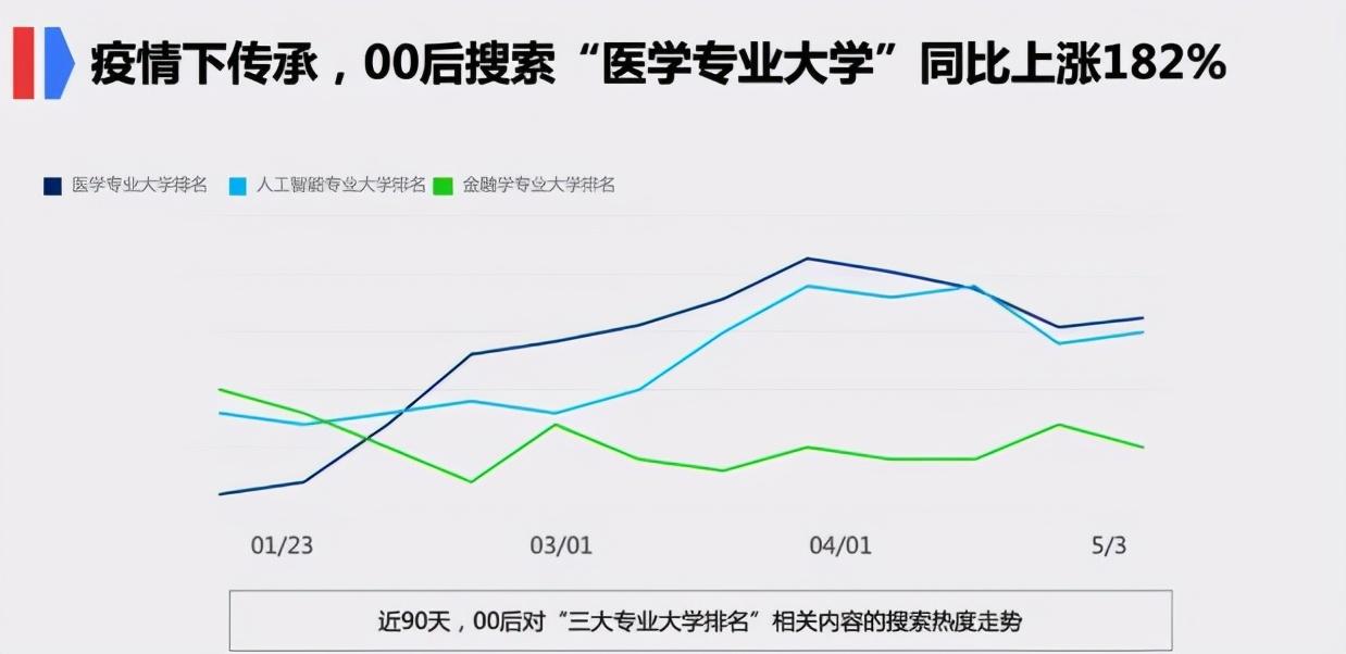 近年来考生和家长对医学类专业十分感兴趣,据百度大数据,2020年00后对医学专业大学相关搜索热度远高于之前的第一名——金融学专业。在考生热衷同时,自然一些高校就会迎合趋势新开设相关专业。2020年教育部同意四川81所高校新增284个高职高专专业名单中,新增数量前5名的专业就有护理、康复治疗技术两个属于医药卫生大类的专业。