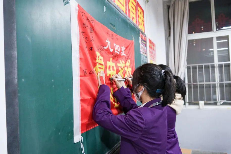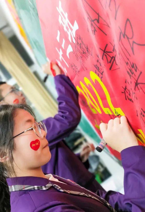 大会结束后,各班学生继续开展班级活动,在本班的誓言旗帜上,纷纷写下自己的名字,学生们的脸上洋溢着自信和阳光,充满着对未来的期待与向往。