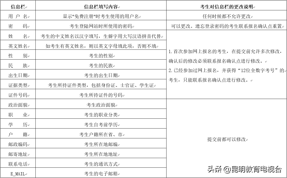 (三)报名注意事项:考生必须认真阅读网页上云南省招生考试院以及考生所属州(市)、县(市、区)报名确认点的有关公告。