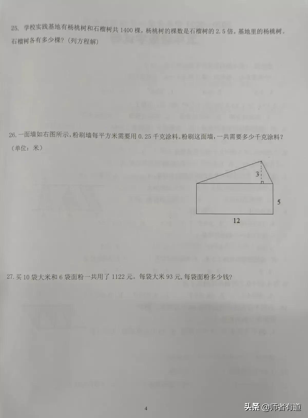 这份试卷共五个大题,都是一些常规题型,整体来说难度偏小,但想得满分大家还不可掉以轻心。选择题第4小题注意按运算顺序,且不可随便运用运算律。