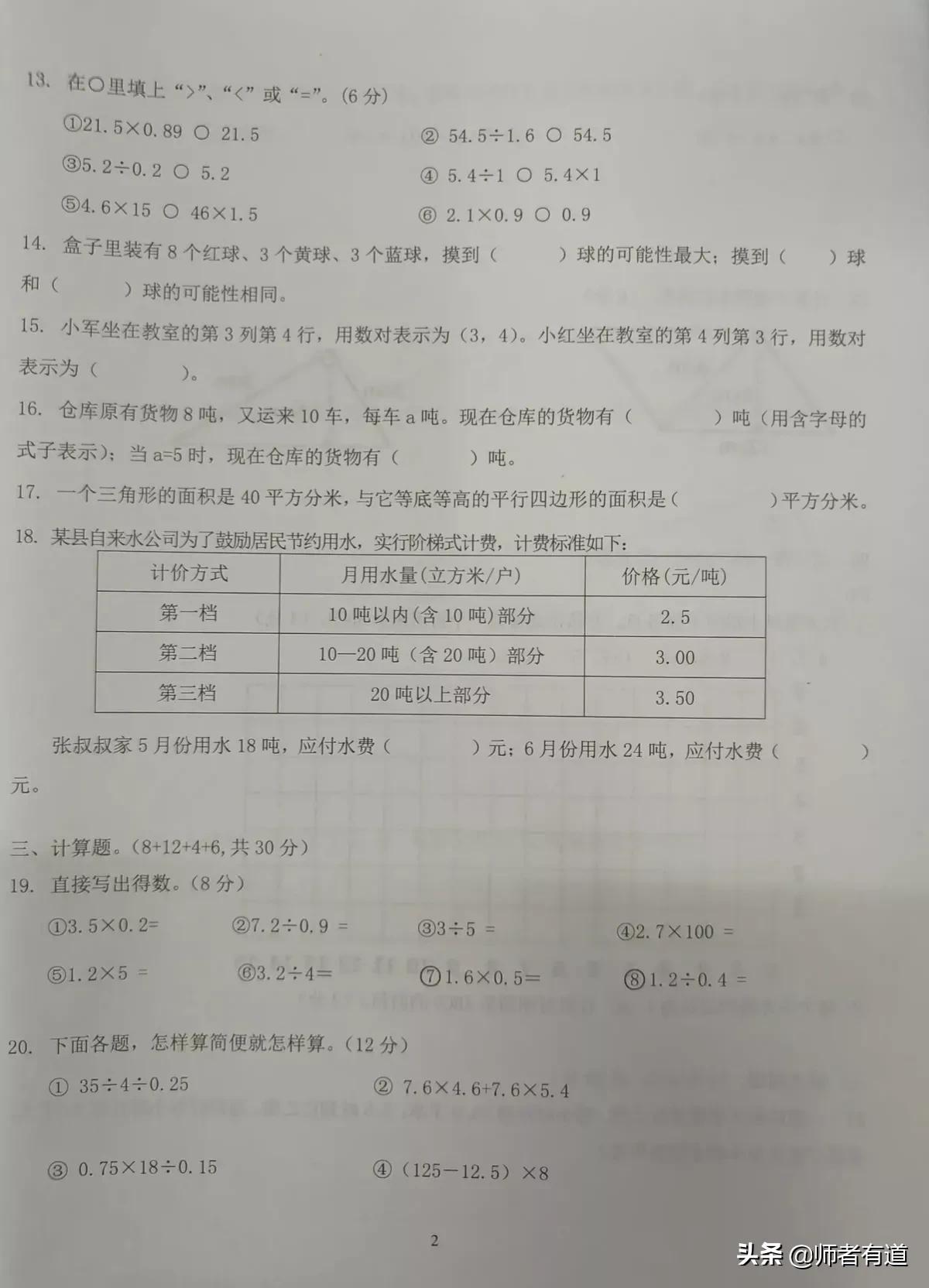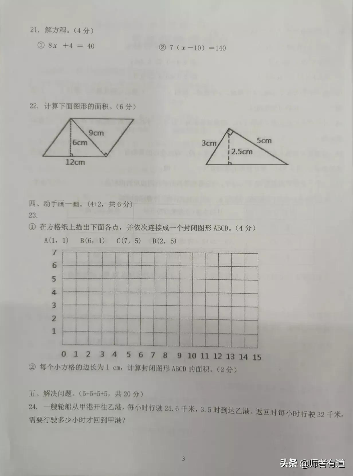 今天给大家分享一份五年级上册数学期末试卷,趁着假期大家再对本学期知识点做复习巩固、查漏补缺。