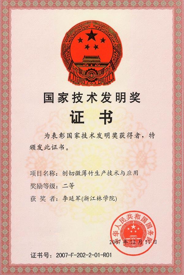 浙江农林大学的录取通知书印刷材料,是其自主研发的、具有自主知识产权的刨切微薄竹制造技术。改技术获得2007年国家技术发明奖二等奖。也是2007年国家技术发明奖中唯一的林业类获奖项目。