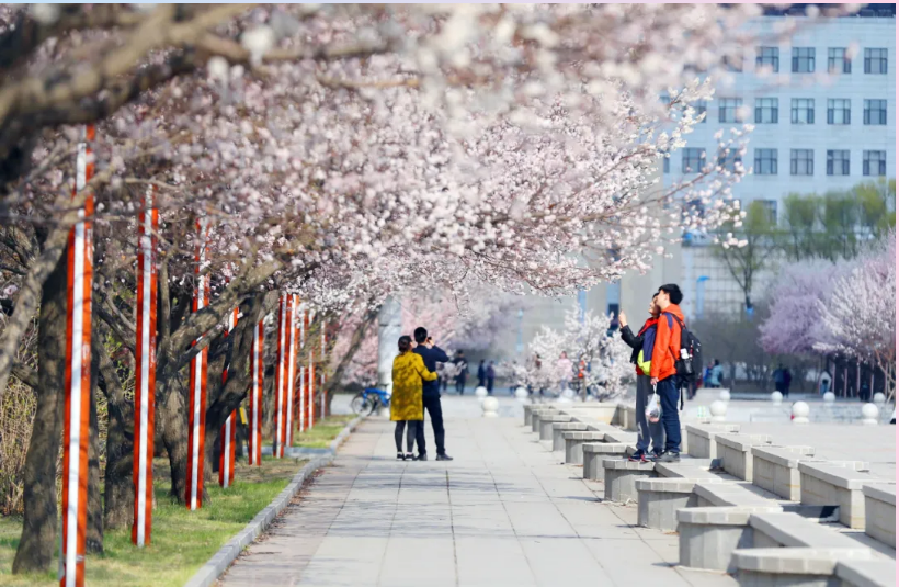 春花烂漫,姹紫嫣红,四月的吉大已经开出来一片花园。桃之夭夭,灼灼其华,春风解语,粉黛添芽,一树一树的桃花开放,描绘着初始的希望,春日的画卷已经徐徐展开,吉大等你归来。