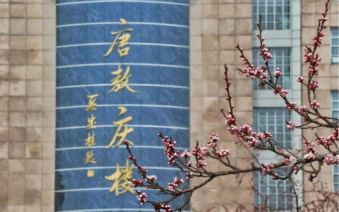 只闻寒梅映雪,未见桃花傲霜,那是你未曾到过吉大的春天。一场春雪悄然而至,却并不打扰桃花绽放的热情,在粉桃和白雪的映衬下,熟悉的建筑又别是一番景象。