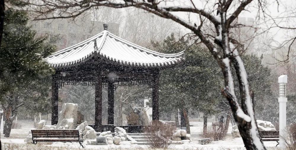 吉大的冬天与雪是分不开的,雪一落,这里就变成了粉雕玉琢的童话世界。雾凇晶莹剔透的挂在树枝上,还绿着的松树上覆了一层雪。雪花纷纷扬扬,打着旋儿飘落,落在教学楼的房顶上,落在运动场的跑道上,落在刚刚下自习的同学身上……这时候不必气恼,待雪过天晴,就会有不一样的风光。