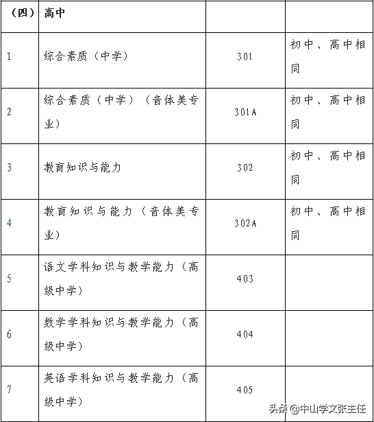 5. 申请中职文化课教师资格的人员参加高级中学教师各科考试。