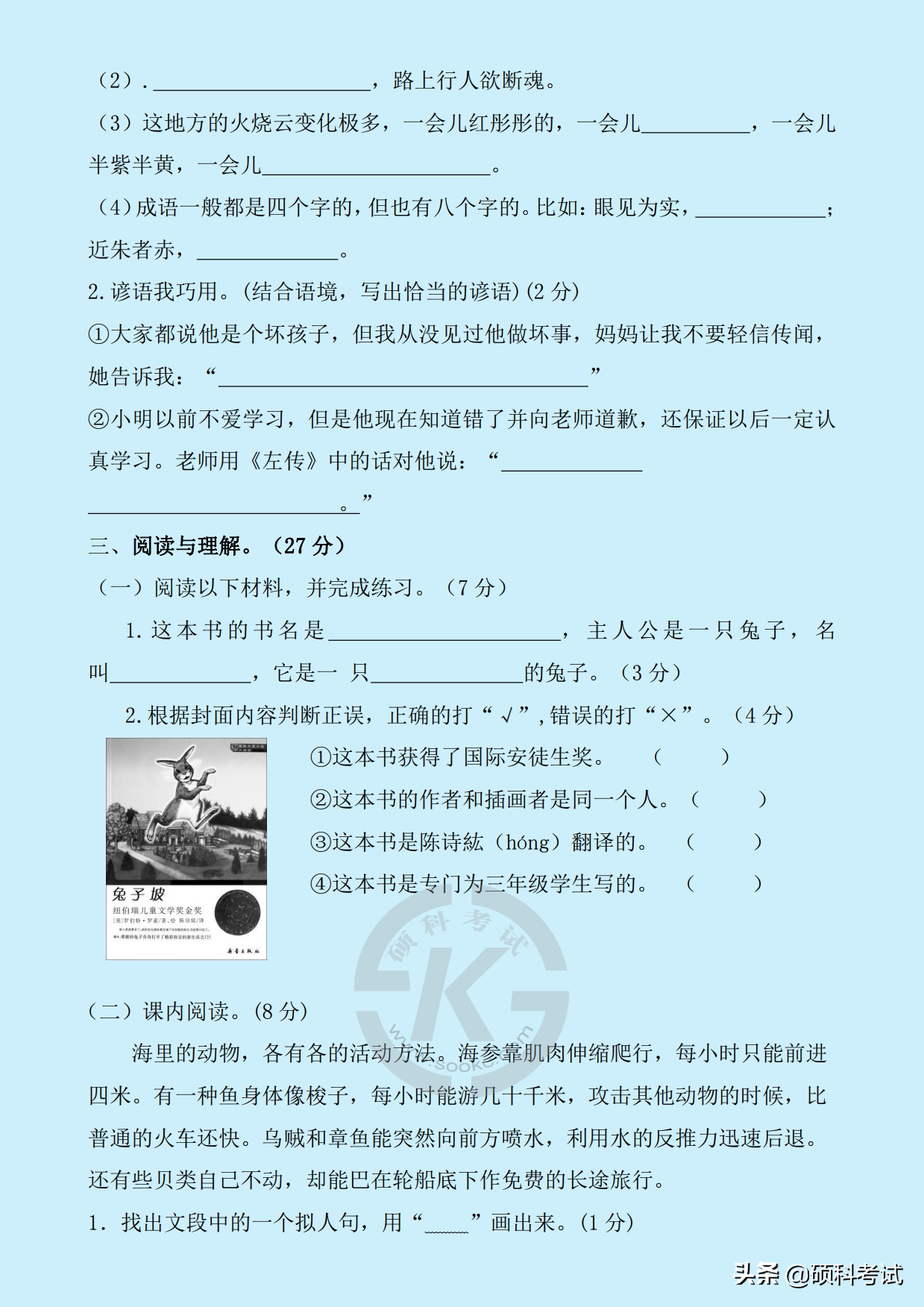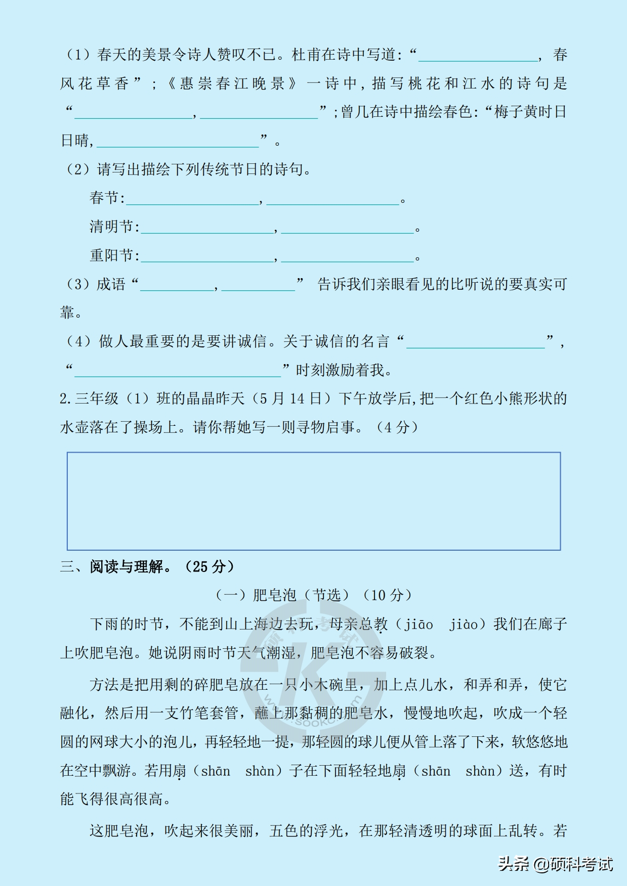 版权声明:我们致力于保护作者版权,注重分享,被刊用文章【三年级期末考试试卷(三年级期末试卷)】因无法核实真实出处,未能及时与作者取得联系,或有版权异议的,请联系管理员,我们会立即处理! 部分文章是来自自研大数据AI进行生成,内容摘自(百度百科,百度知道,头条百科,中国民法典,刑法,牛津词典,新华词典,汉语词典,国家院校,科普平台)等数据,内容仅供学习参考,不准确地方联系删除处理!;